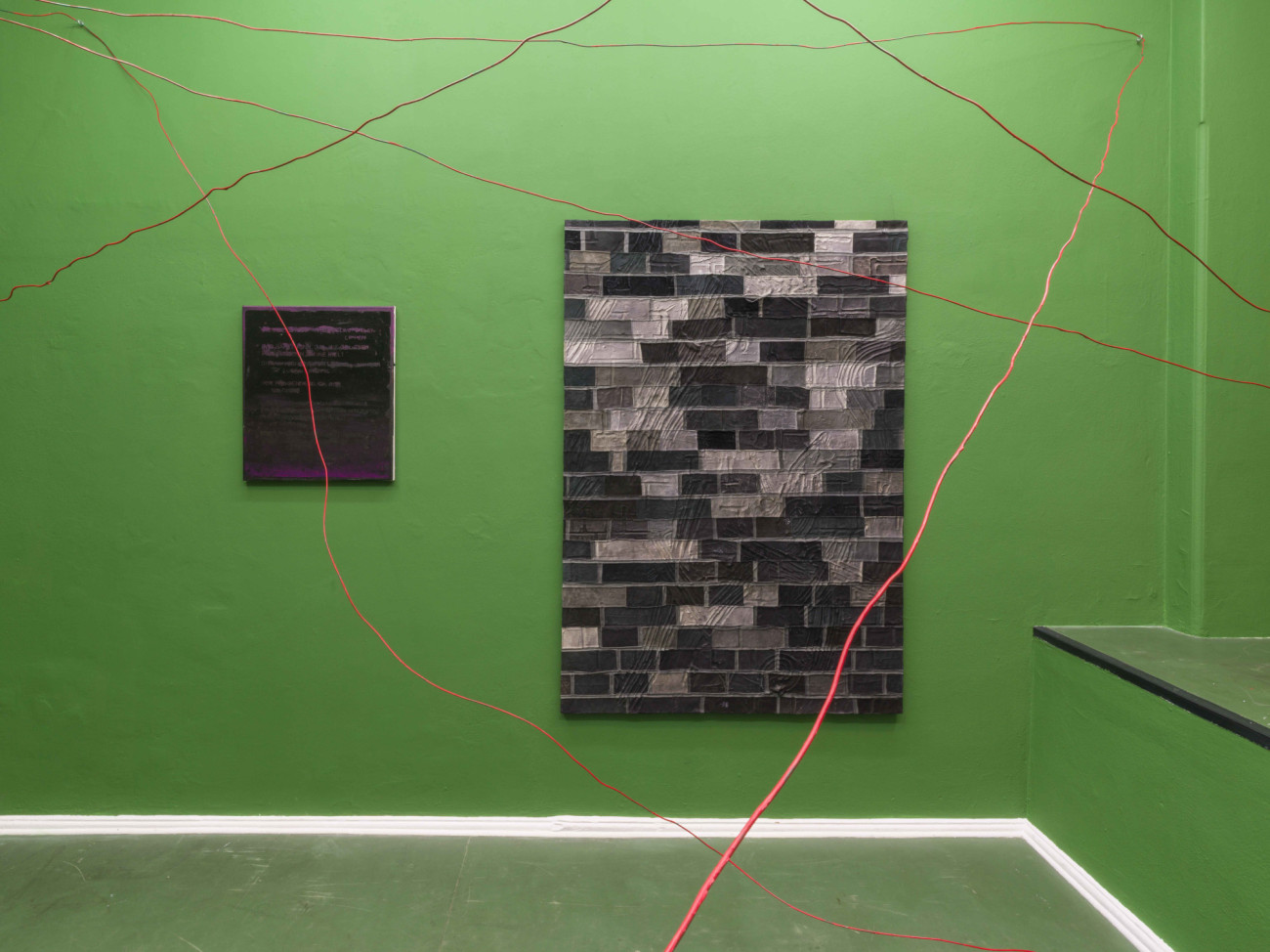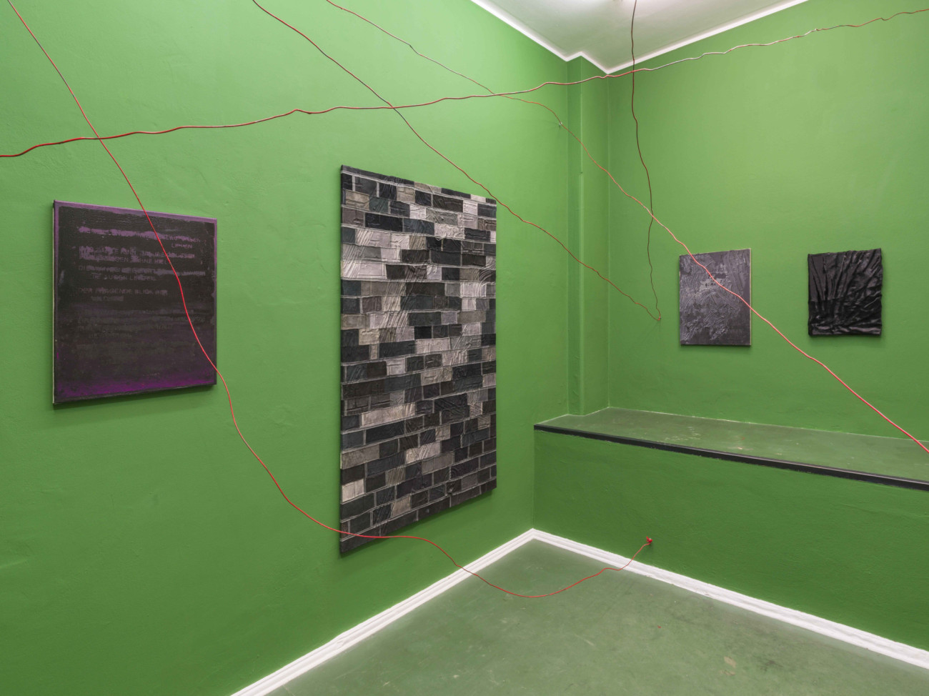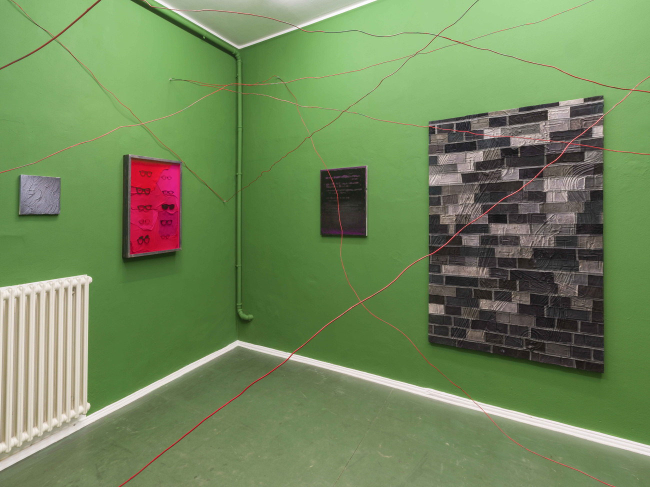 Und wo ist der rote Faden? Einfach überall. Er spannt sich wie ein Spinnennetz quer durch den Raum, erschwert den Zugang, macht es auch physisch anstrengend sich den Arbeiten zu nähern. Aber dann sind sie ganz nah. Ganz offen, voller Zwischenräume, die den Betrachter einladen, zwischen den Zeilen zu lesen. Sie sind da und wollen nichts. Sie funktionieren für sich. Aber wenn ein Außen dazukommt, ein fremder Blick, eine neue Perspektive, dann leben Sie auf, werden Wahrheit und Geschichte zugleich.