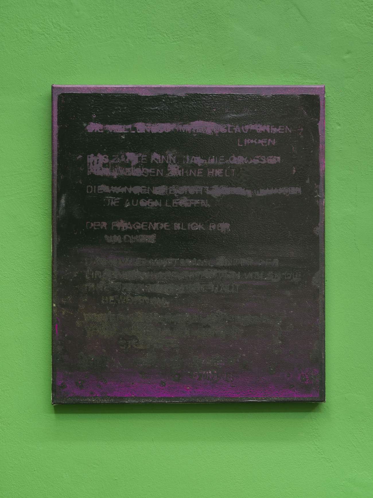 „Lange nicht mehr dagewesen“. In der Tat. Das Leben kam immer wieder dazwischen. Dann die Pandemie. Aber es gibt uns noch. Hannu Prinz auch. Präsenter denn je, erlaubt er hier einen kleinen aber feinen Rückblick. Auf Arbeiten wie „Die Schwelle“ von 2015 (Pferdefell und Acryl auf Leinwand) oder „Akire Olleh“ von 2012 (Öl und Acryl auf Leinwand). Beides förmliche Grenzüberschreitungen. Ersteres ethisch, das andere medial. Das Pferdefell war für Hannu Prinz die Erfüllung visueller Haptik schlechthin. „Ethisch wie malerisch war das für mich eine Herausforderung damals und heute wahrscheinlich noch mehr. Aber ich konnte mich diesem Material nicht entziehen“, erinnert er sich. „Akire Olleh“ ist visualisierte Sprache, ein unkonventionelles Gedicht, ein Experiment von Übersetzung und Miteinander der Disziplinen, eine Ode an die künstlerische Freiheit.