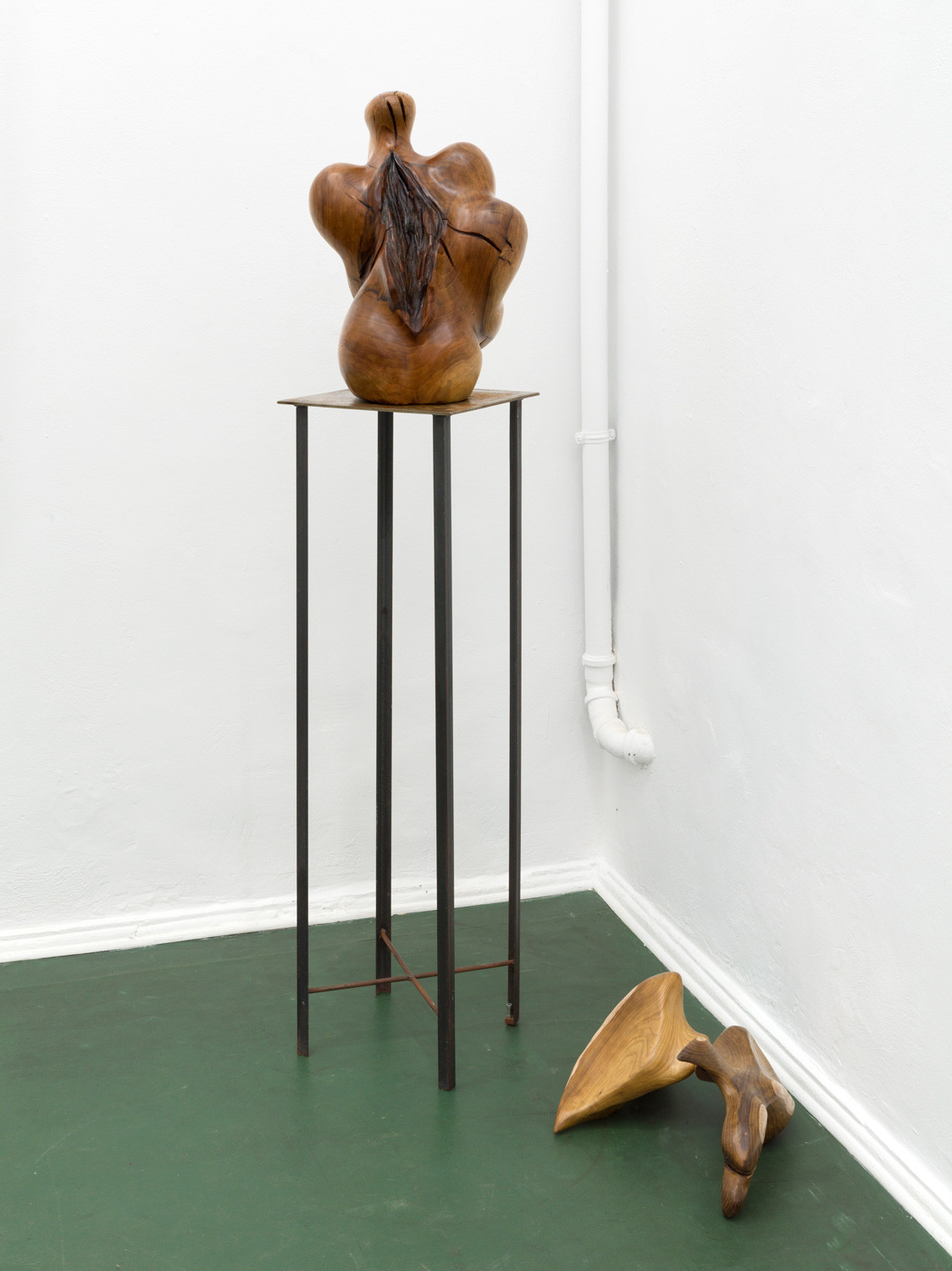 Pia Bohrs Skulpturen bewältigen geometrische Vorgaben. Zwar beginnt die Arbeit mit einer groben Idee, doch lässt sich die Künstlerin letztendlich von der Maserung des Materials leiten. Sie geht mit dem Holz. Lässt sich von der Arbeit führen. Vertraut ihr.