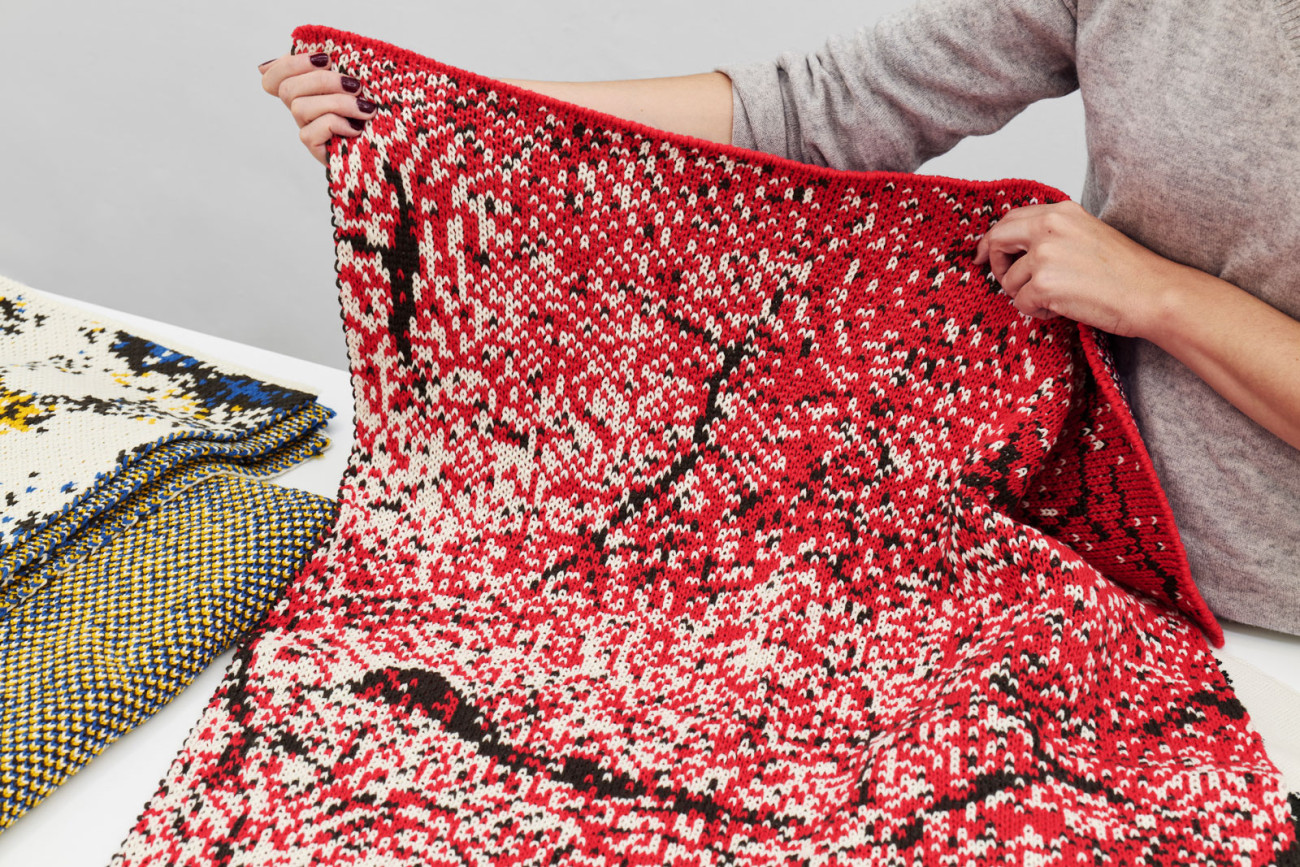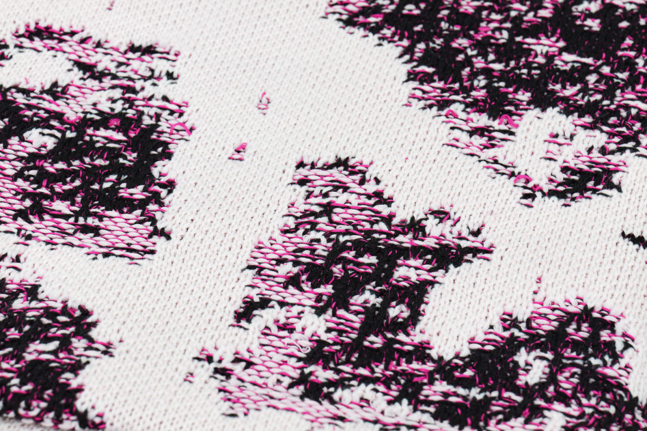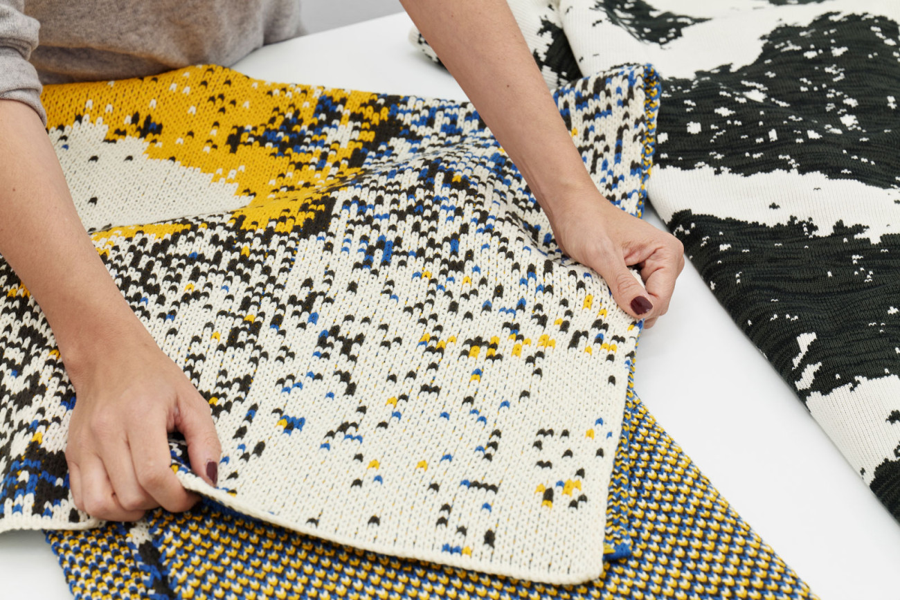 Wer Ordnung ausschließlich im Objekt an der Wand zu erkennen vermag wird bei Sascha Pohle nicht weit kommen. Der Künstler betrachtet die Strickbilder seiner Serie Passage (2016ff) nicht nur als horizontale Bilder. Vielmehr definiert er die fototextilen Stücke als performative Objekte, die durch die Bewegungen des wiederholten Faltens, Entfaltens und Auslegens oder Hängens zu animierten gestischen Stücken werden können. Jede Serie besteht aus einer Reihe von Textilien, die auf Fotografien des Bodens basieren ohne sich in erkennbare Darstellungen oder Bildern aufzulösen. Sie verwenden Muster und Mimikry als materielle und visuelle Oberflächenmodulationen, die das Bild als Ort selbst definieren. Mit ihrem unregelmäßigen Netzwerk aus Brüchen und Spalten deuten sie auf mehrere mögliche Faltungen hin. Ihr Charakter changiert zwischen einer Interpretation des real Vorhandenen und einer abstrakten Karte, die kein spezifisches Gebiet beschreibt obwohl sie Erinnerungen an einen konkreten Ort enthält. Jetzt also Berlin. Berlin ist weniger autobiografisch als Düsseldorf (Geburtsort) oder Amsterdam und Seoul (Wohnorte). Dafür wird erstmals der Ausstellungsort als wesentliches Kriterium in die Auswahl der Bildmotive einbezogen. Zum Ausgleich entfalten sich die Formate: Große Decken statt Tücher, gestrickt im wunderbaren Textillabor des Textilmuseums in Tilburg.